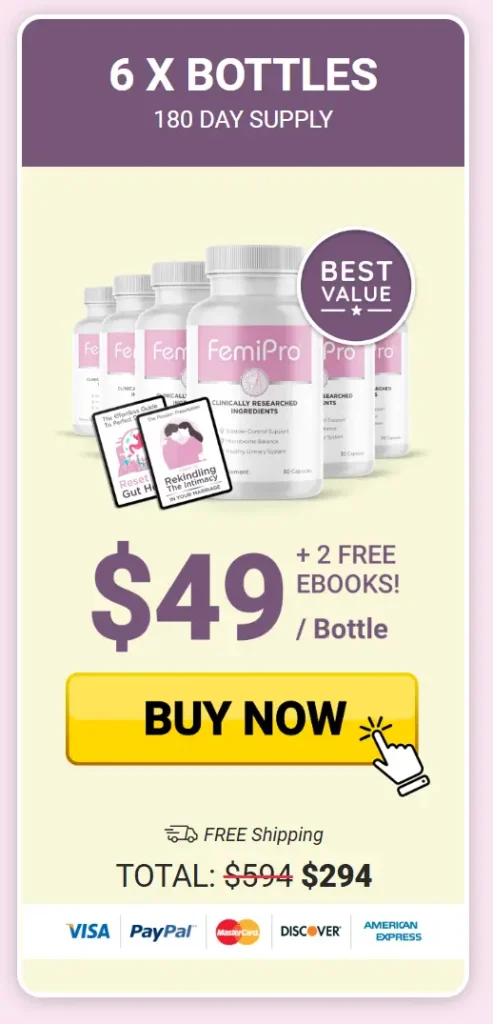 To get the best experience and long-term benefits, we recommend ordering at least 3 to 6 bottles of FemiPro. This ensures continuous support while also unlocking the best value — including discounts and exclusive bonuses. Keep in mind that these offers may not be available all year long.